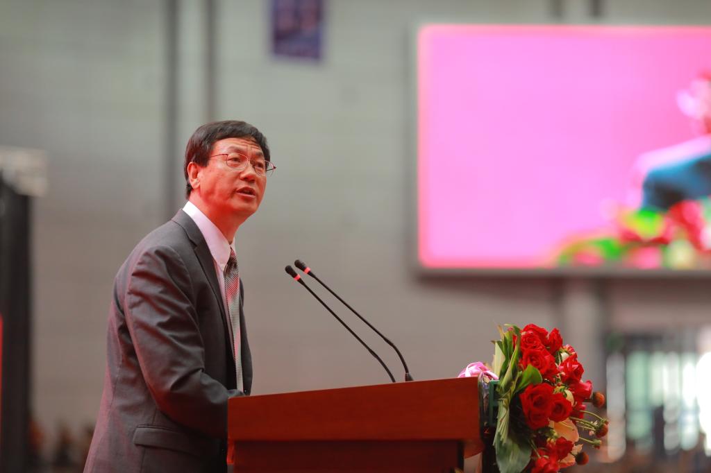 今天是一个特别的日子,我非常激动,为你们高兴。首先,请允许我以个人的名义、以一个老校友的身份,祝贺你们完成了博士、硕士和学士的学习任务,从今天开始你们将迈向社会。