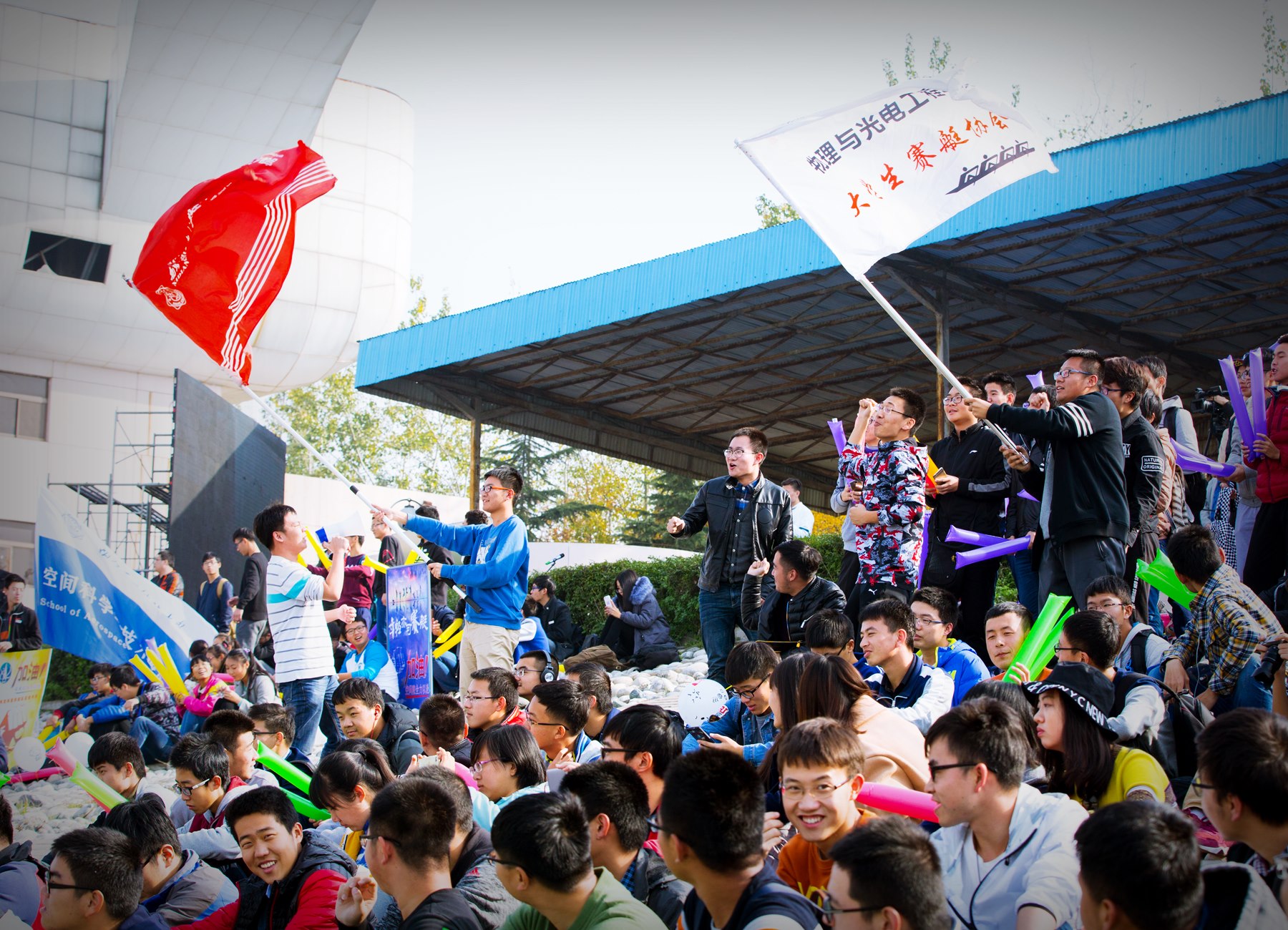 寰宇苍茫,激昂破浪,数艘赛艇在渭水上乘风前行,你超我赶,比赛好不激烈。然而不单单是赛场上的紧张激烈,场下师生观众的热情也丝毫不差,各个学院的呐喊加油声相继传来,“微院必胜 微力无穷”“百舸争流,通院最牛”“物光神锋 谁与争锋”……加油助威口号响彻两岸。