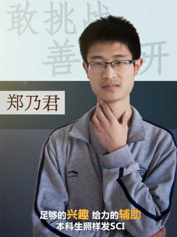 “郑乃君发文的事我们最近也听说了,作为本科生能发到SCI真的好厉害!上大学以后总感觉自己不需要再像高中那么拼了,可是看到乃君他们经过努力获得了如此的成绩,真后悔自己当初怎么就没试试”,更多的同学如是说。