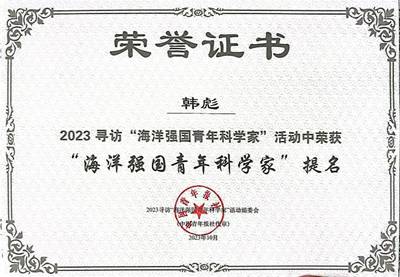 【名师开云】开云教师韩彪荣获“海洋强国青年科学家”提名
