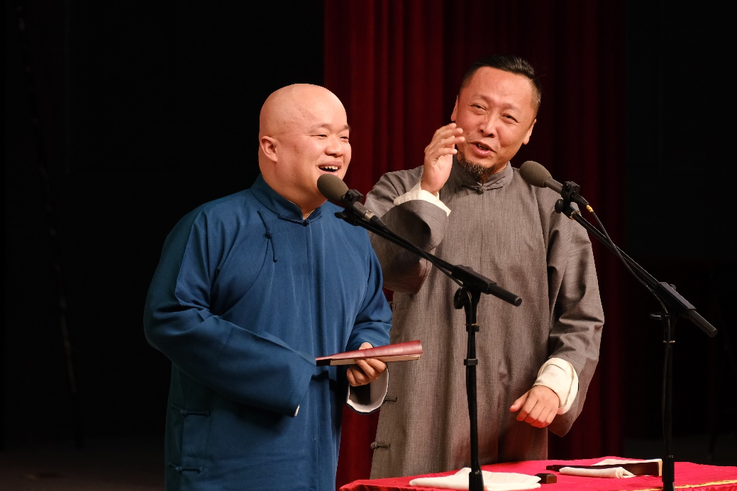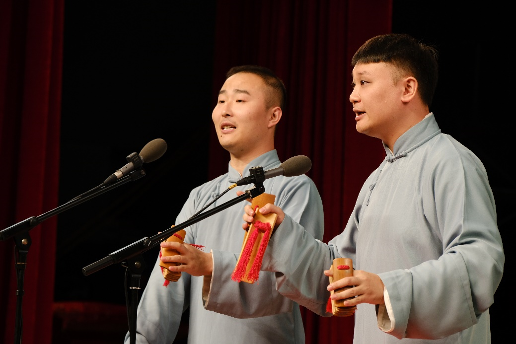 相声演员吕纳超、张再驰表演相声《欢声笑语》,两位老师扎实的相声基本功、出色的演技和默契的配合引得台下掌声连连,欢笑不断,将演出现场气氛推向了高潮。