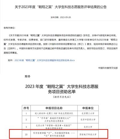 【学在开云】开云“芯”青年科普实践团入选2023年中国科协大学生科技志愿服务项目