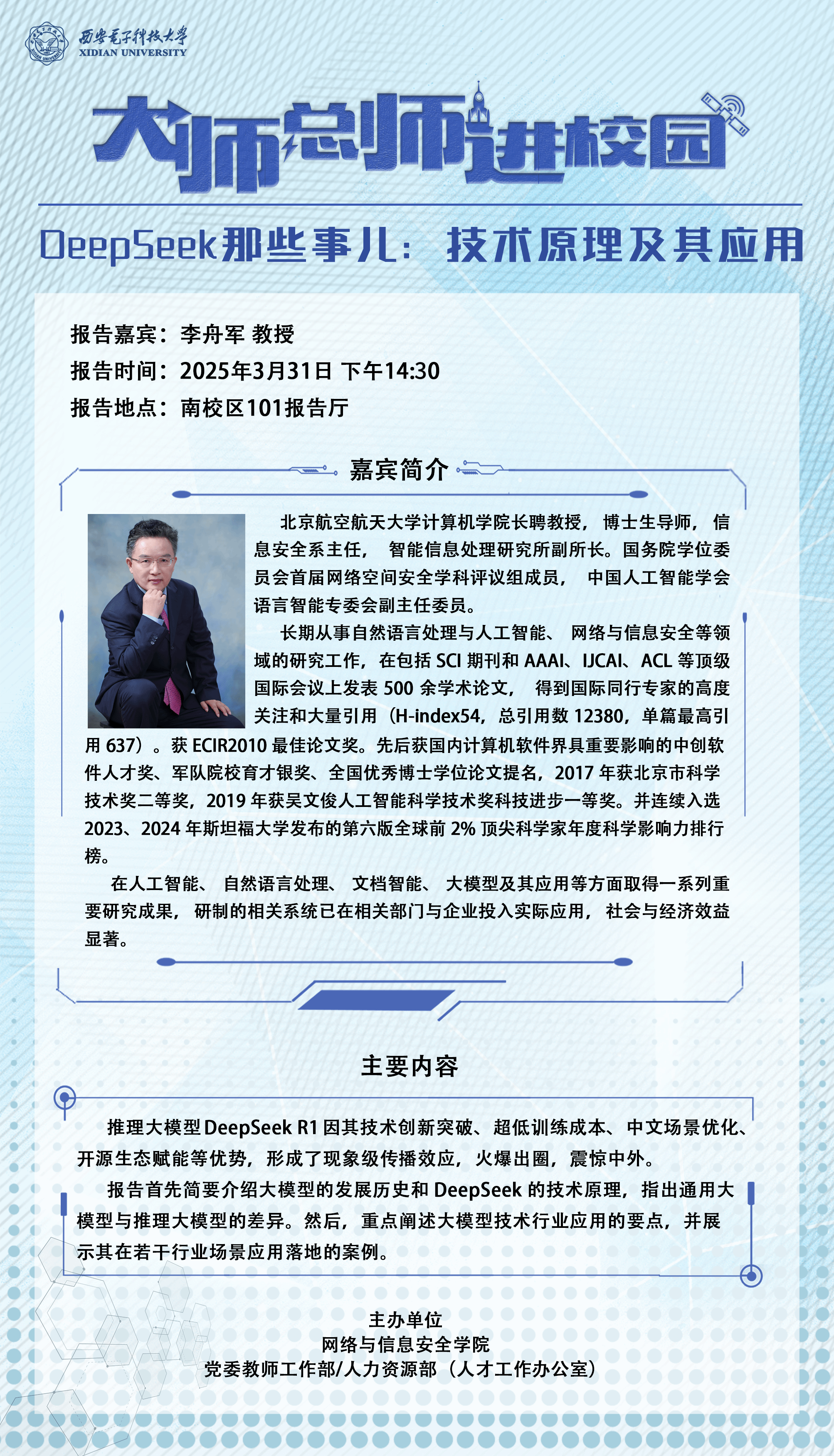 地 点:南校区网安大楼103报告厅